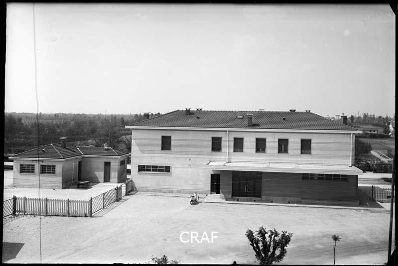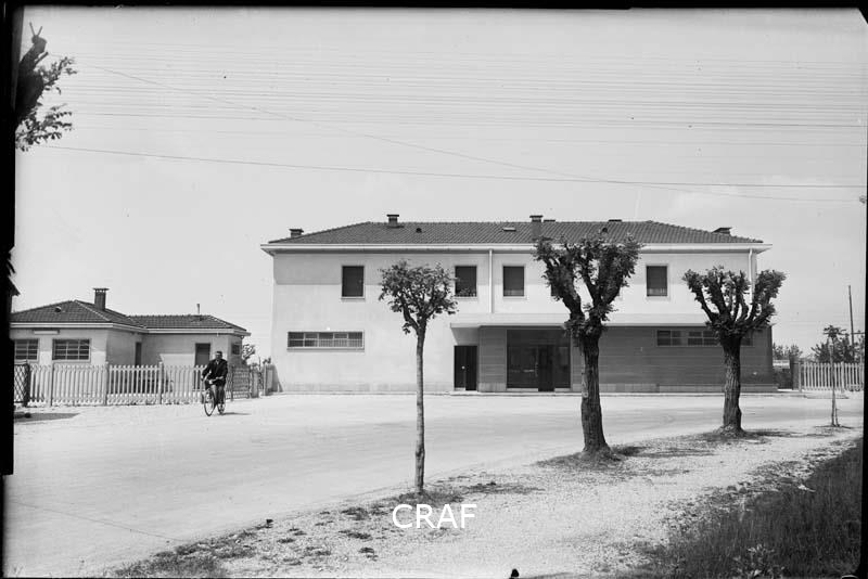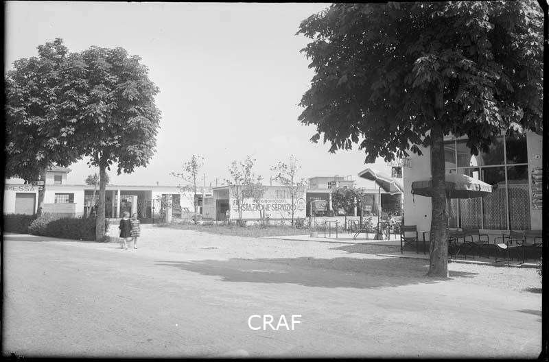 Veduta delle officine e del bar Bortolotti in via Piave.