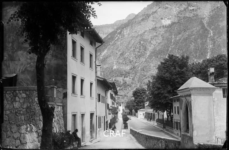 Veduta di via Roma ripresa dall'ingresso del paese, presso il ponte. A...