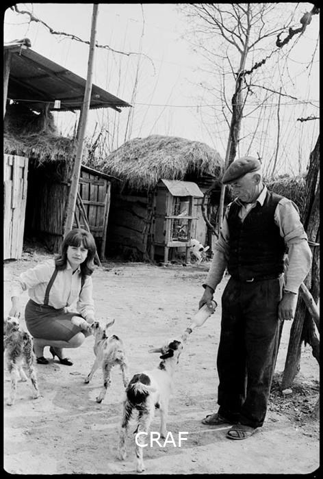 Ritratto di Maria e Olivo Vit nel cortile di casa loro mentre allattano con dei...