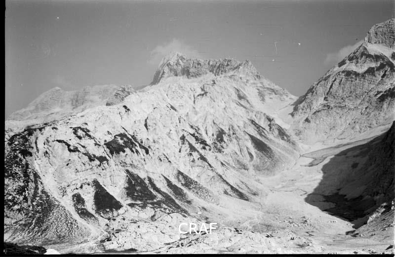 Veduta della sella Prevala ripresa dal rifugio Celso Gilberti.