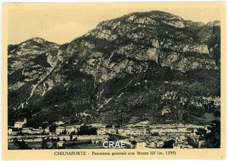 Panorama di Chiusaforte con il monte Jôf sullo sfondo.