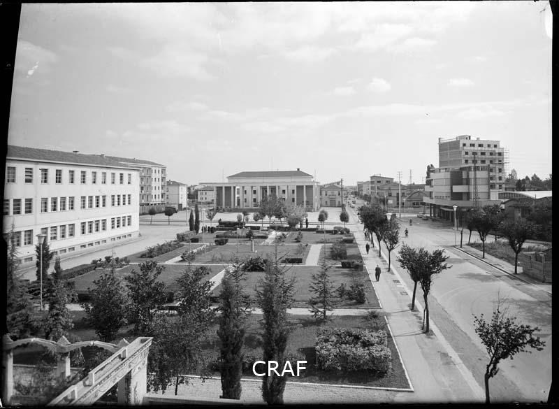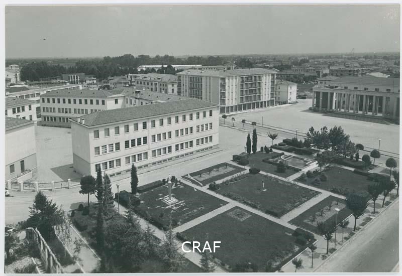 Veduta di viale Marconi e di piazza del Popolo ripresa dal tetto del palazzo di...