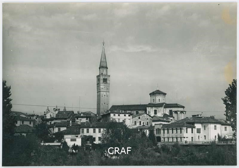 Panorama di Pordenone ripreso dai boschi del Noncello; al centro spicca il...