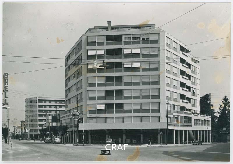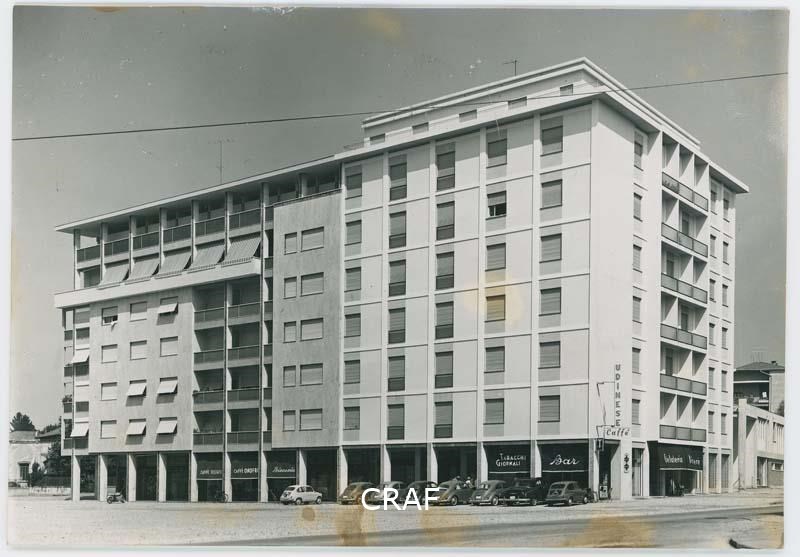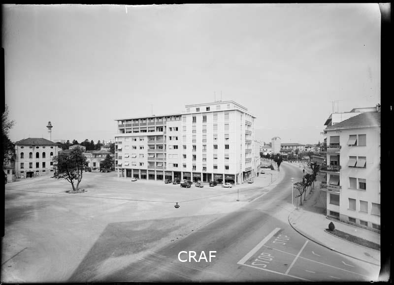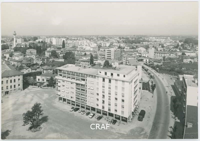 Veduta di piazza Risorgimento con al centro il condominio Zacchi Cossetti...