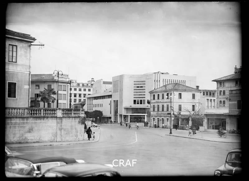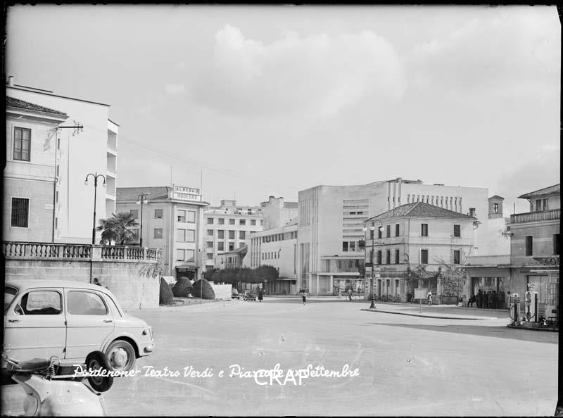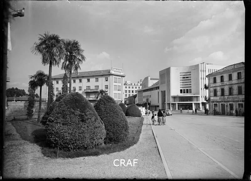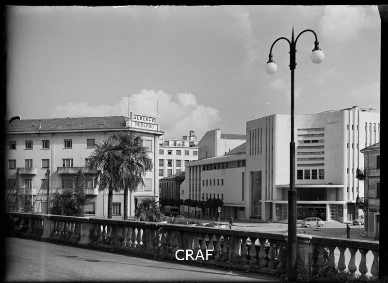 Veduta di piazzale XX Settembre in direzione dell'albergo Moderno e del Teatro...