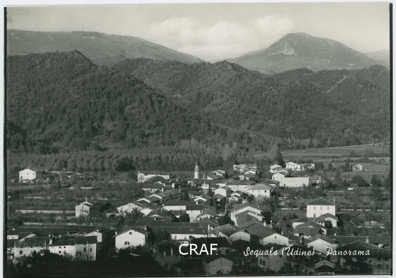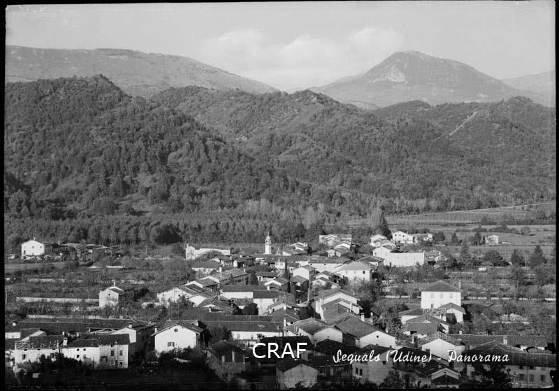 Veduta di Solimbergo ripresa leggermente in quota, con il monte Raut sullo...