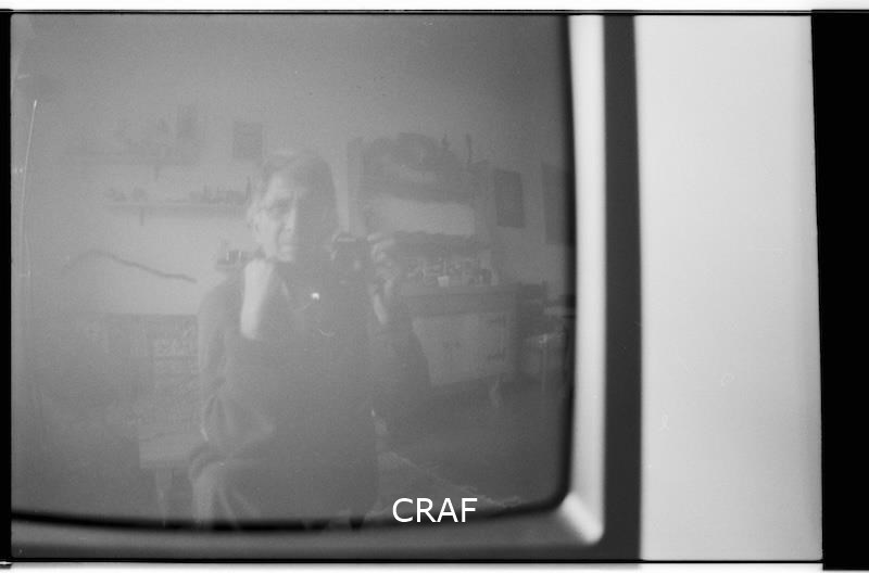 Autoritratto del fotografo Aldo Beltrame in un interno, riflesso nello schermo...