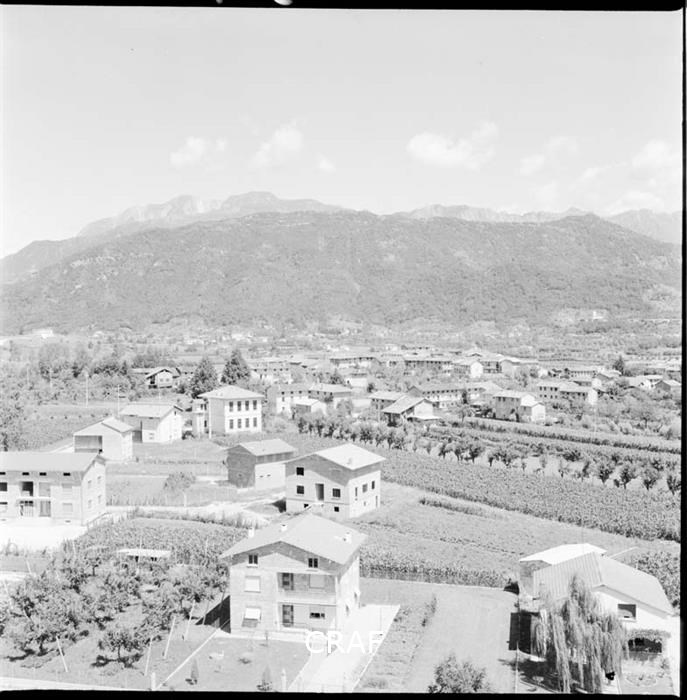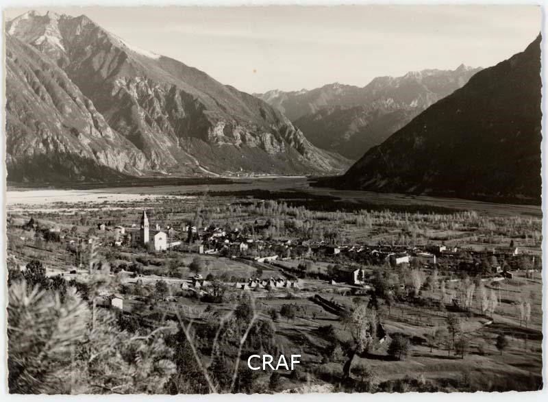 Panorama di Bueriis e delle montagne ripreso leggermente in quota.