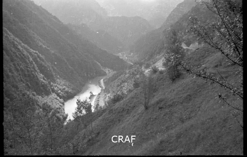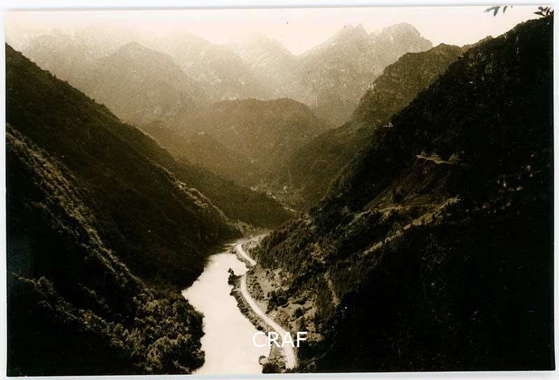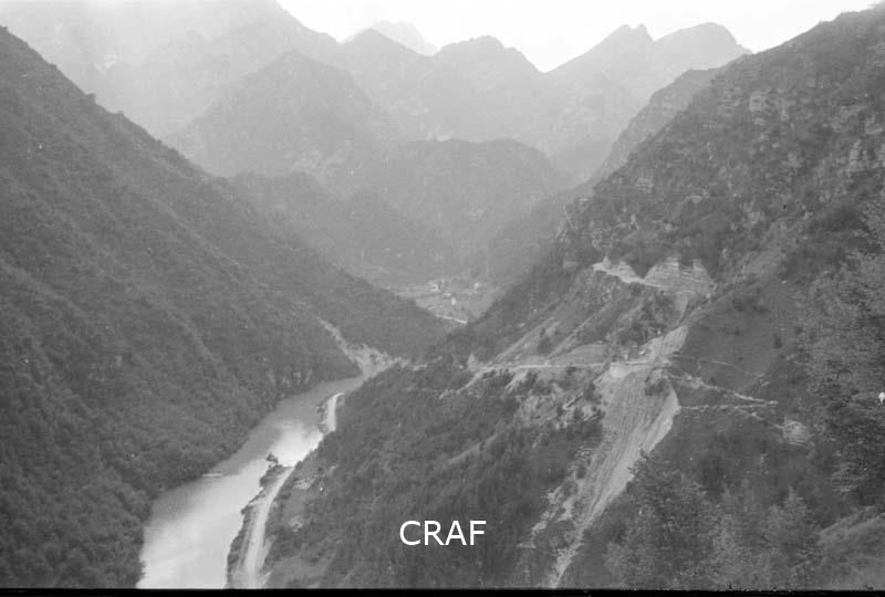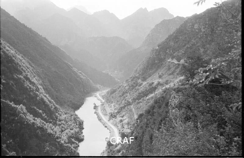 Veduta del torrente Cellina affiancato dalla vecchia strada.