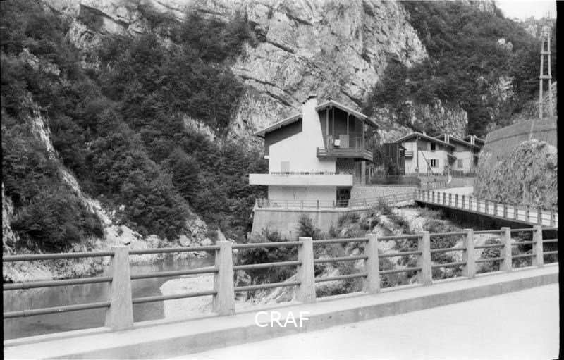 Veduta di alcune abitazioni nei pressi della diga di Barcis, costruita nel 1954...