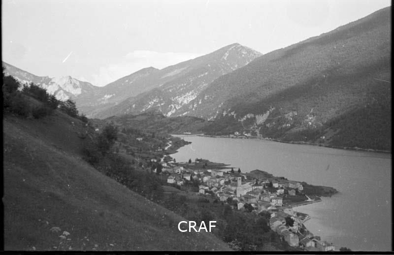 Dettaglio del lago e di Barcis visto dalle alture sopra il paese.