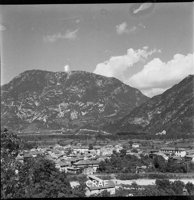 Panorama di Alesso ripreso in quota con le montagne sullo sfondo.