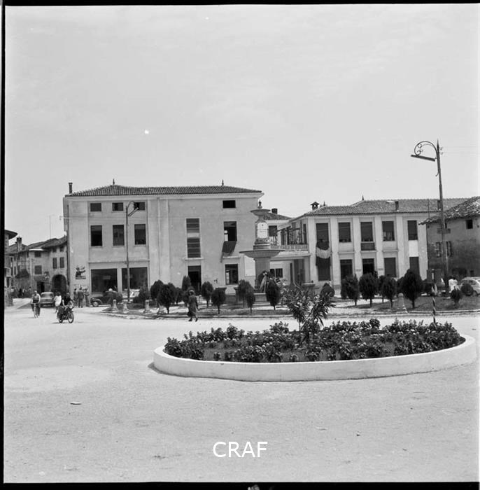 Veduta di piazza IV Novembre ad Arba: al centro dell'immagine il monumento a...