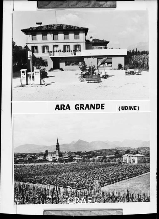 Fotocomposizione con due immagini in colonna di Ara grande separate dalla...