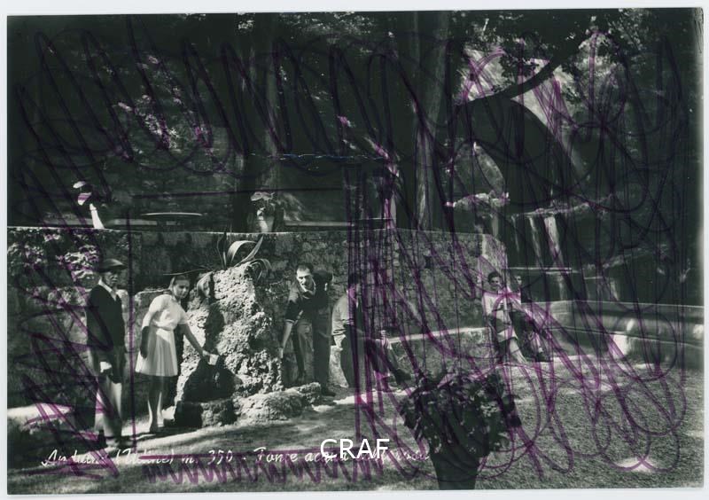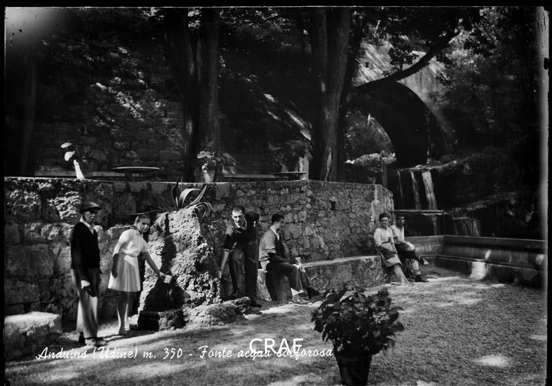 Fotografia di gruppo che ritrae persone mentre attingono l'acqua della fonte di...