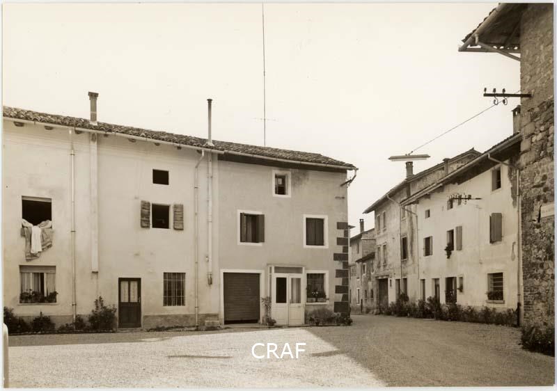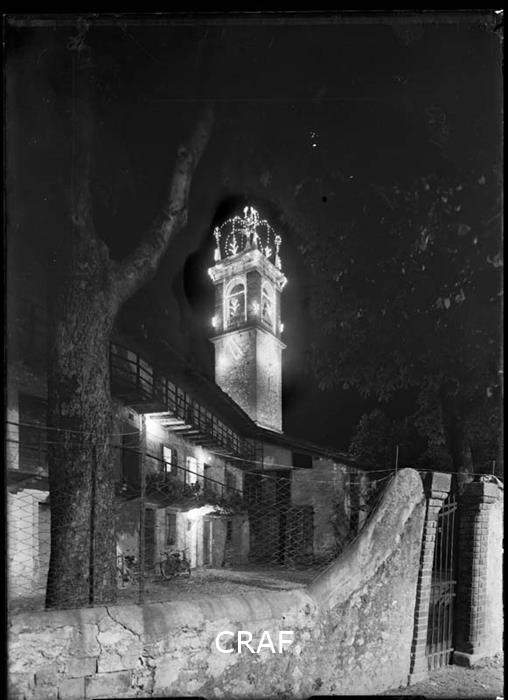 Veduta notturna del centro di Adegliacco: dietro il cortile di una casa rurale...