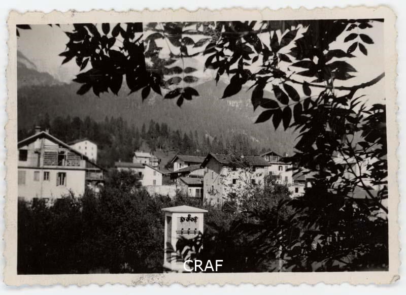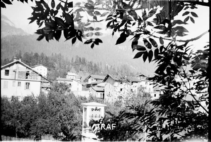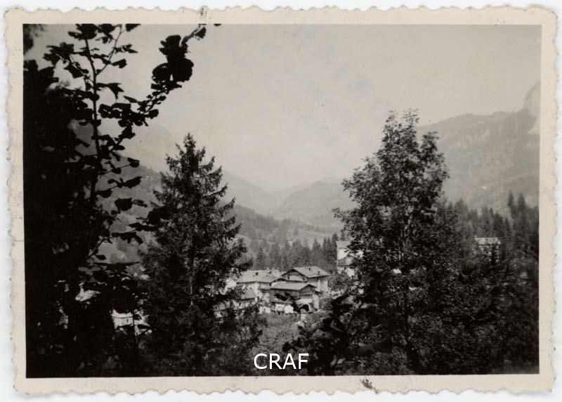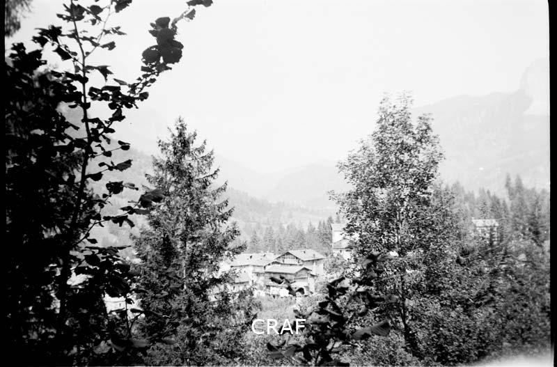 Veduta di Andrazza ripresa da un bosco limitrofo del quale si vedono gli alberi...