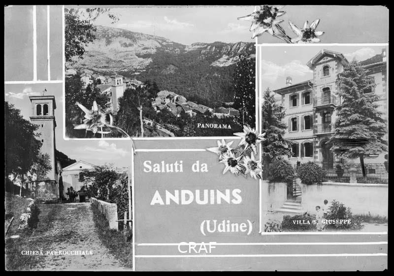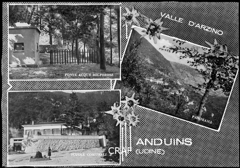 Fotocomposizione con tre immagini di Anduins: le scuole comunali, le fonti...