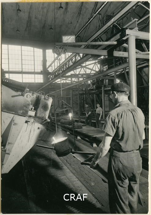 Stabilimento Zanussi: operai al lavoro in fonderia