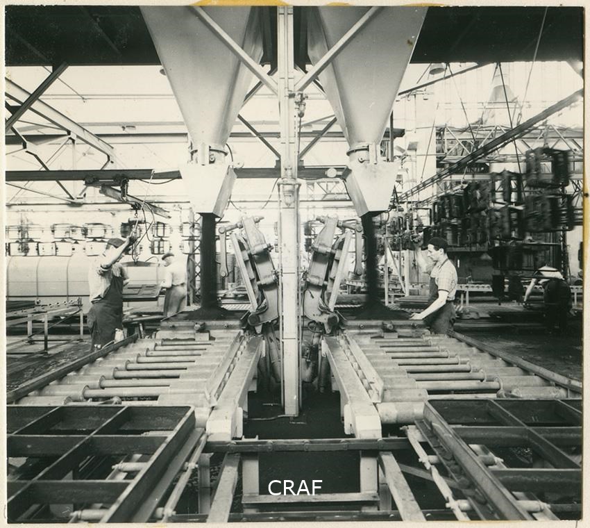 Stabilimento Zanussi: reparto fonderia. Dettaglio delle molazze nella centrale...