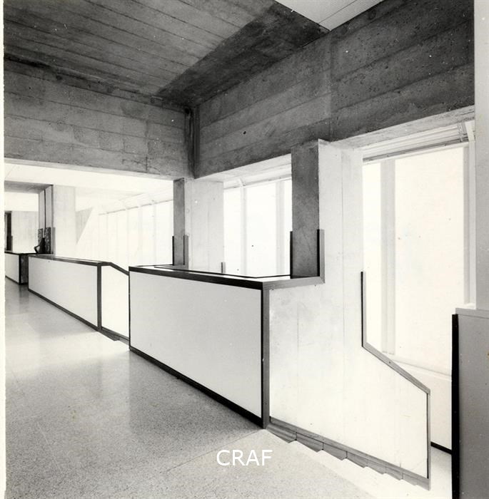 Veduta interna dello stabilimento Zanussi: scale e pilastri in cemento armato