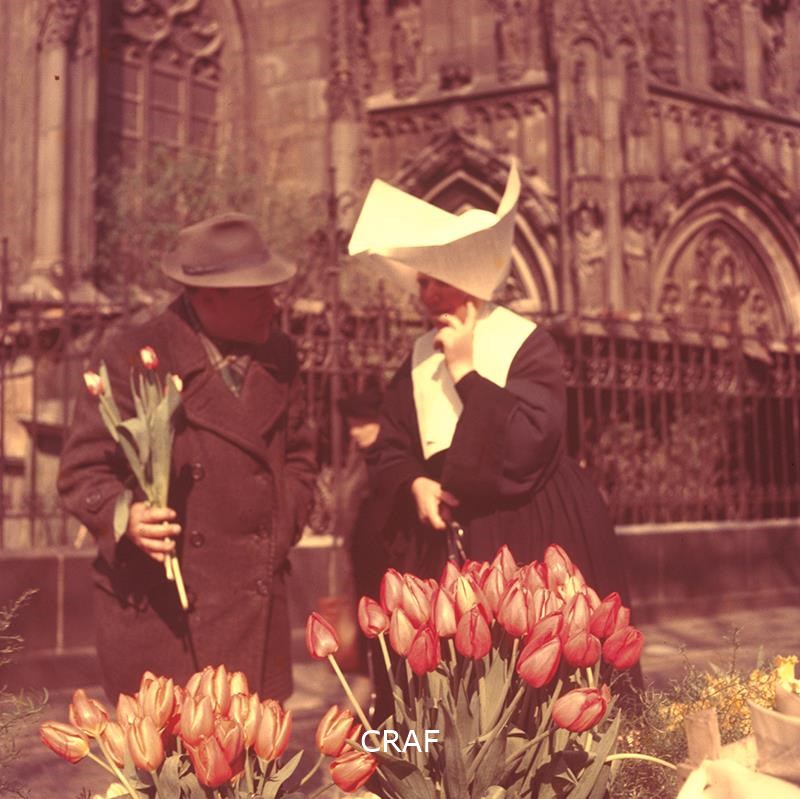 Fotografia spontanea nei presso di Notre-Dame che ritrae un fioraio, dietro...