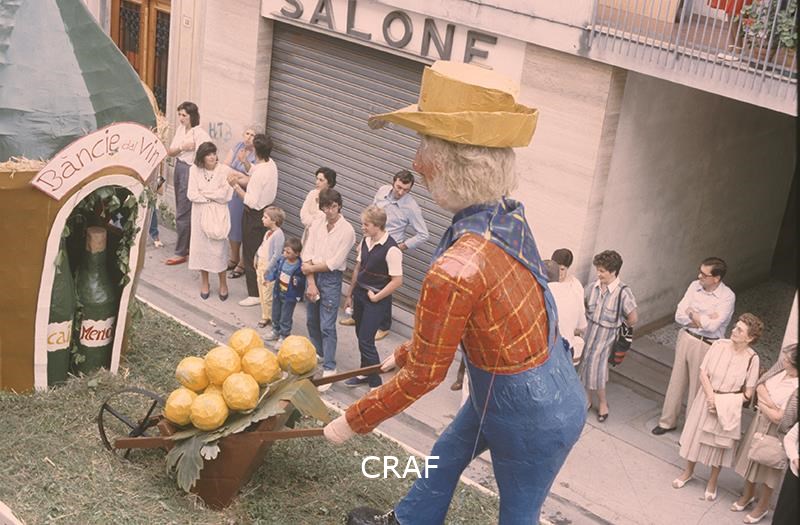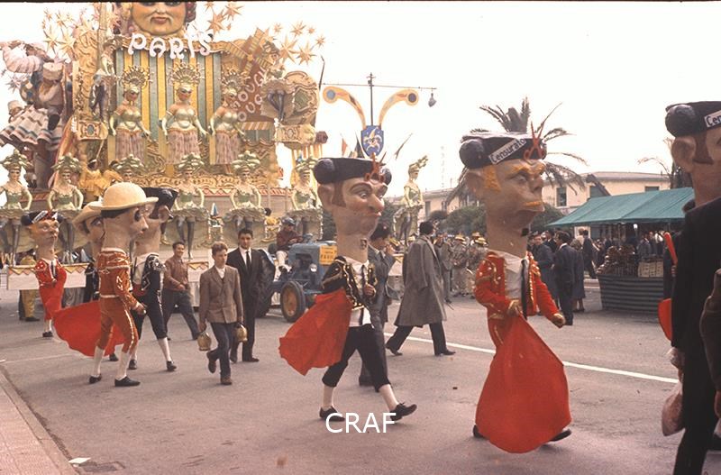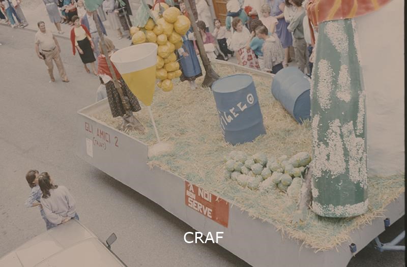 L'immagine ritrae un carro allegorico e il piccolo corteo che lo precede.