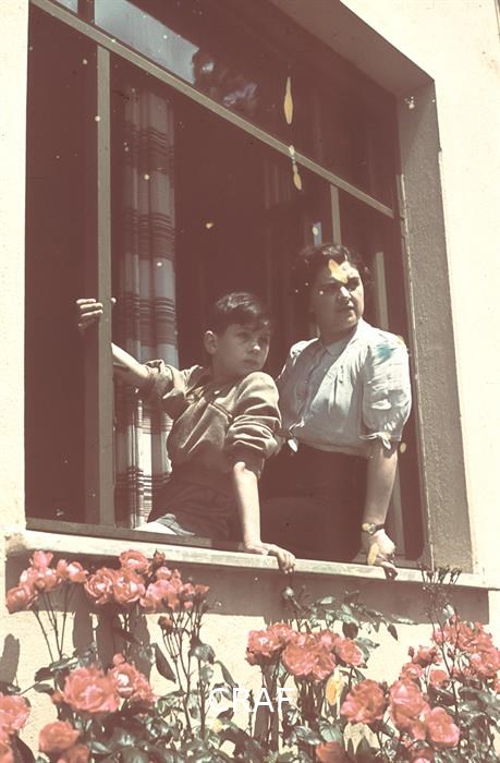 L'immagine ritrae una donna, una ragazzina, un bambino e un uomo in divisa...