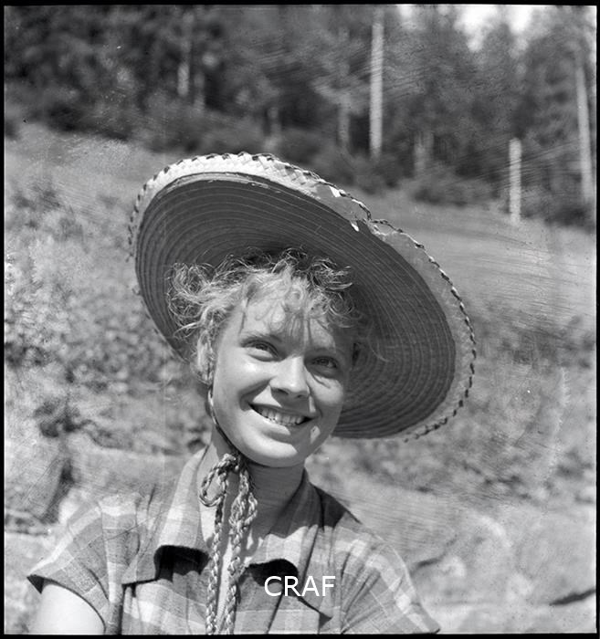 Ritratto di una giovane ragazza con cappello in testa in montagna
