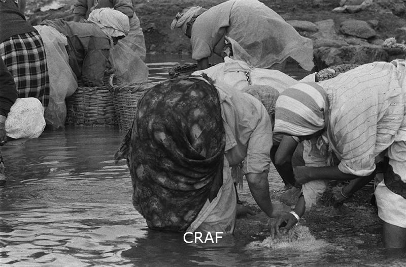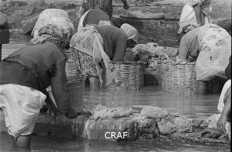 Ritratto di donne e uomini mentre lavano i panni sulle rive di un fiume...