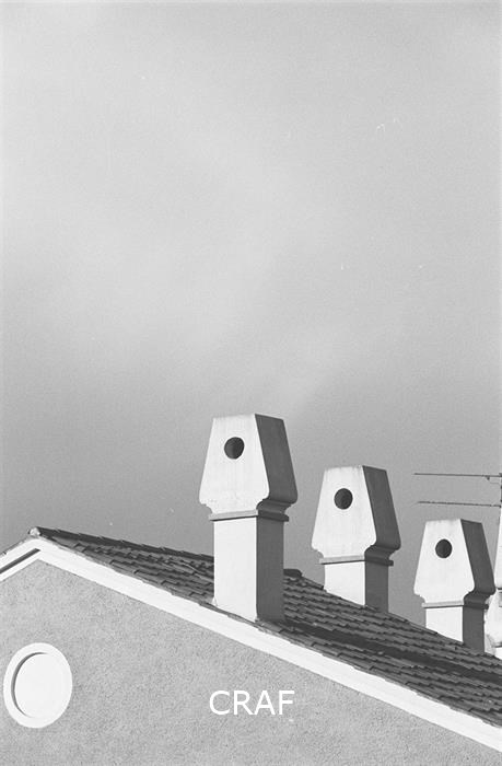 Nell'immagine il particolare del tetto e dei camini di una casa