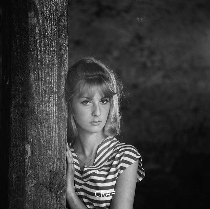 Ritratto di una ragazza appoggiata ad una colonna di legno