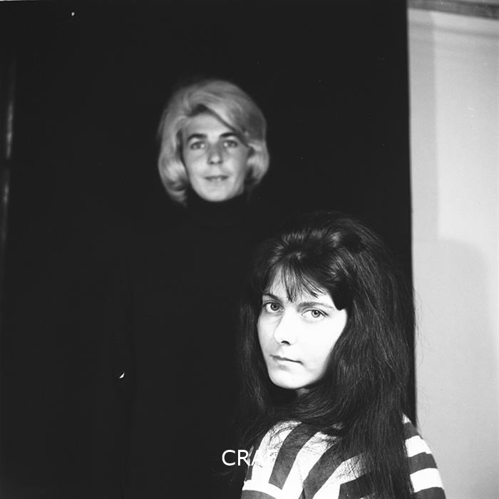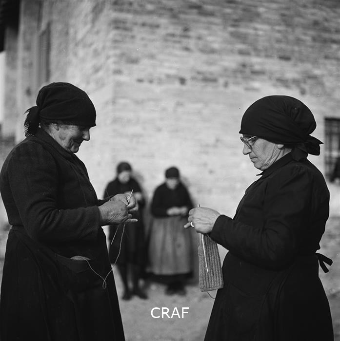 Ritratto di due donne anziane mentre, lavorando a mano con filo e uncinetto, ...