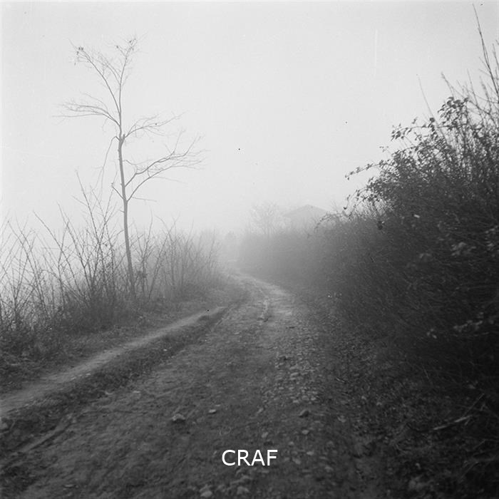 Veduta di una mulattiera in montagna con paesaggio annebbiato