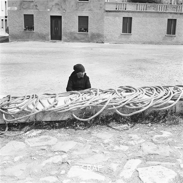 Delle corde appoggiate ad un muretto accanto ad una donna anziana che le ha...