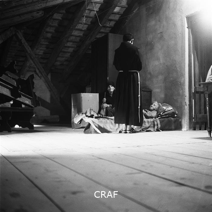 Ritratto di un frate di spalle in visita a due donne anziane, una di queste...