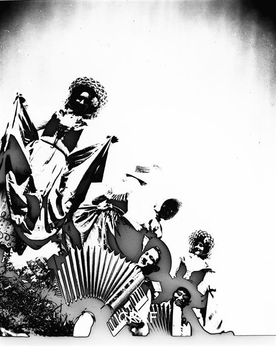 Immagine che ritrae un gruppo di persone mentre ballano e suonano; l'immagine...