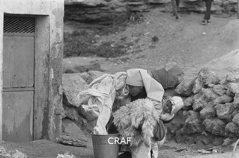 Ritratto di una donna mentre trasporta una coperta di lana verso le rive di un...