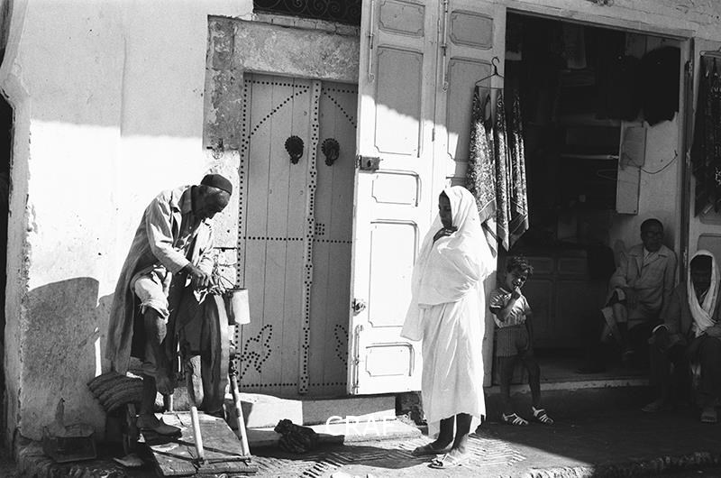 Ritratto di un ragazzo mentre passeggia all'esterno di uno dei tendoni...