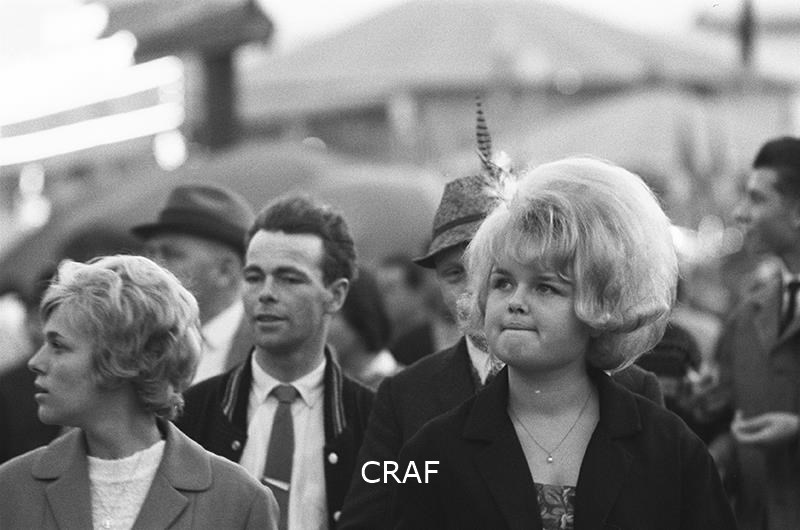 Ritratto di una ragazza con i capelli biondi e cotonati all'esterno di uno dei...