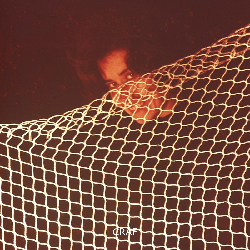 L'immagine ritrae una ragazza in primo piano dietro una rete a maglie larghe.