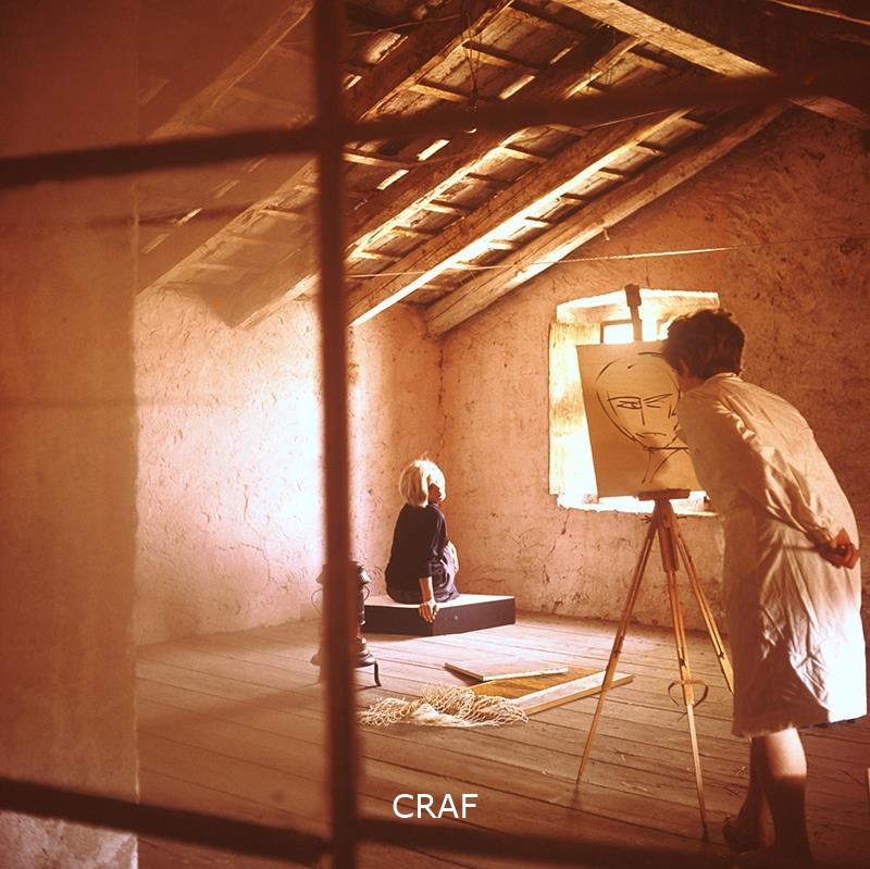 L'immagine ritrae una pittrice mentre esegue un disegno dal vero di una una...