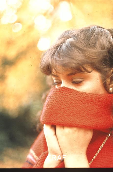 L'immagine ritrae una ragazza in primo piano mentre con le mani alza il collo...