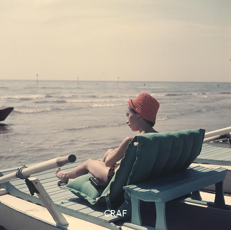 L'immagine ritrae una donna, di spalle, seduta su un lettino da spiaggia.