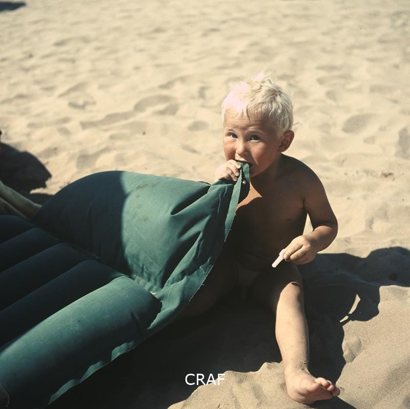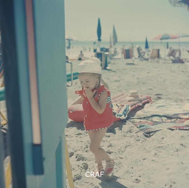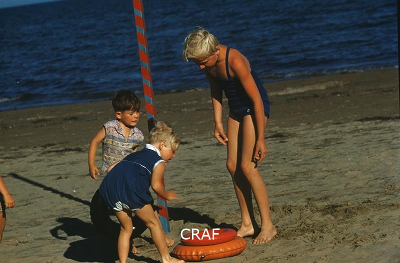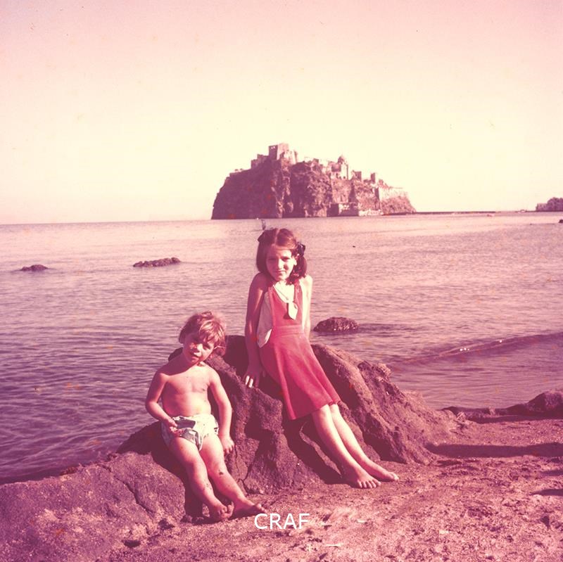 Ritratto di un bambino e una bambina sulla spiaggia; sullo sfondo si riconosce...