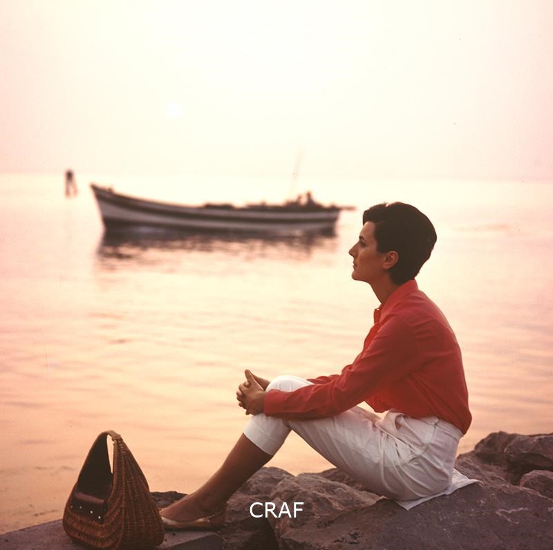 L'immagine ritrae una donna, di profilo, seduta sugli scogli in riva al mare.