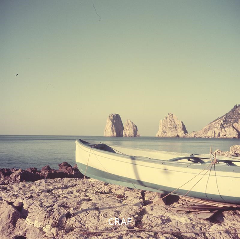 L'immagine ritrae una barca adagiata sugli scogli. In lontananza si scorgono i...