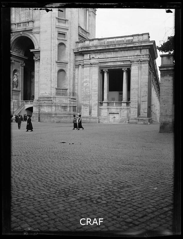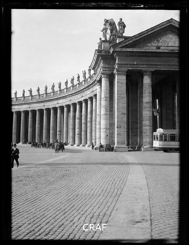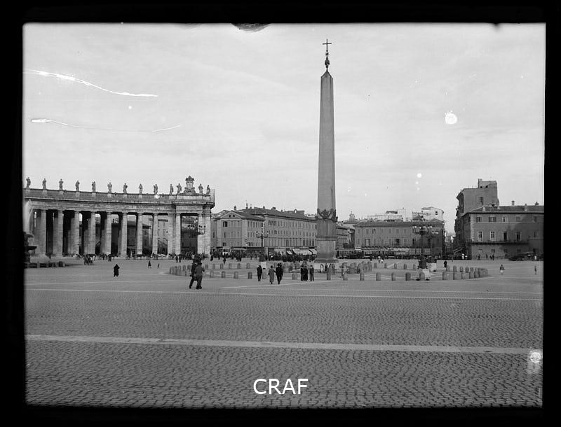Veduta di Piazza San Pietro a Roma ripresa verso l'Obelisco Vaticano.