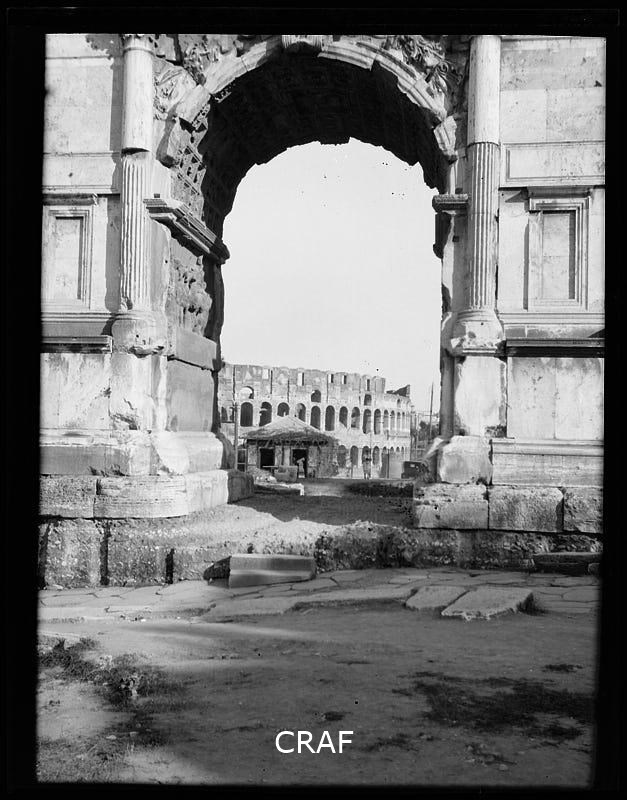 Veduta del Colosseo dall'Arco di Tito a Roma