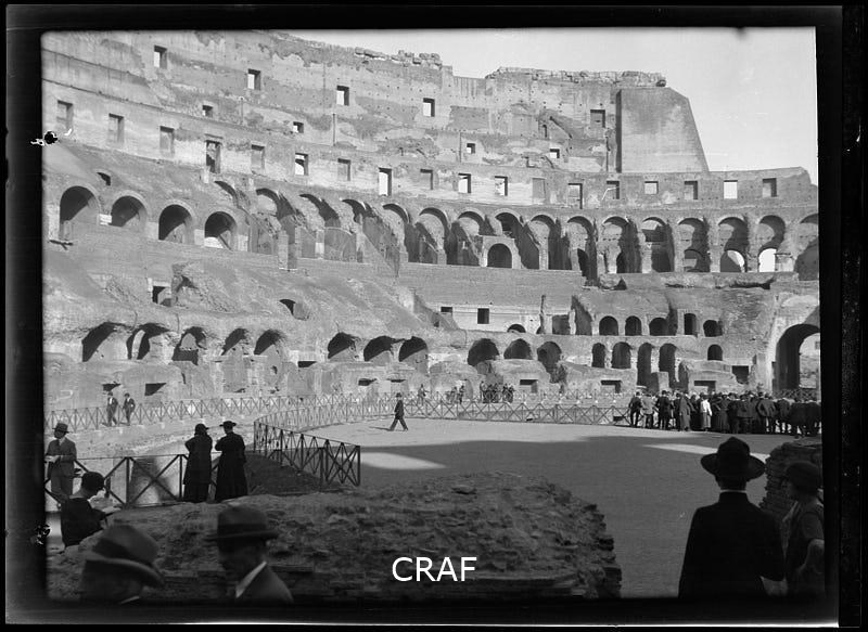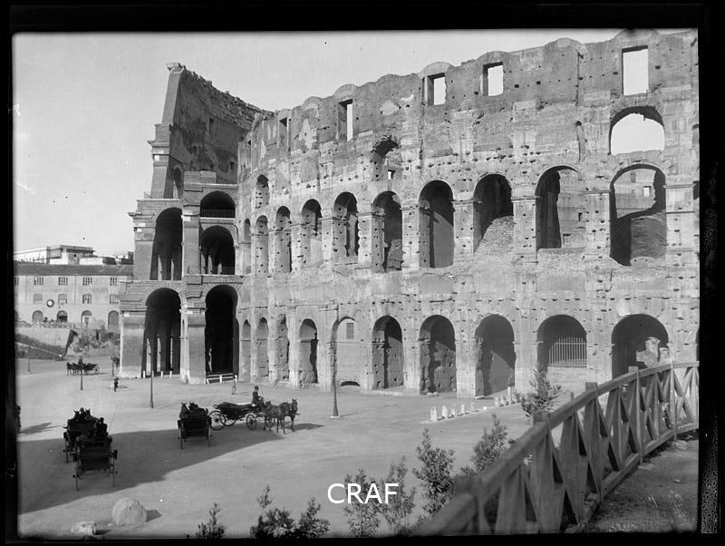 Ripresa dell'interno dell'Anfiteatro Flavio a Roma.